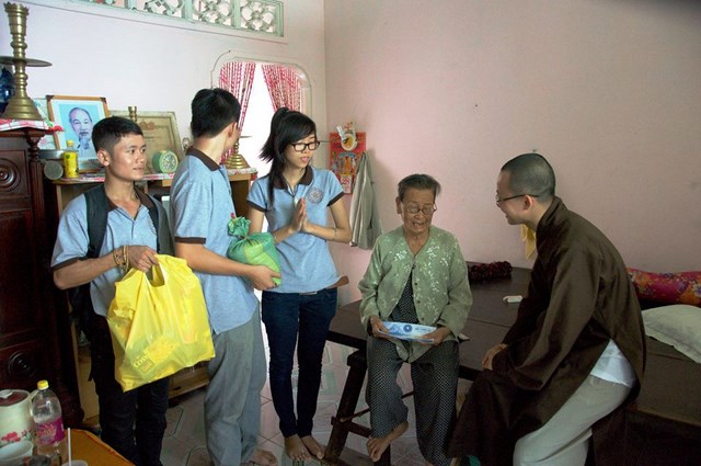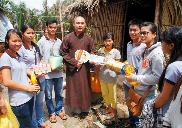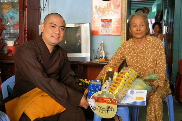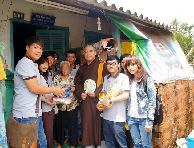 Ai còn nằm lại bên lề rừng hoang ? Để bày tỏ tấm lòng cùa người Phật tử trẻ hướng về truyền thống uống nước nhớ nguồn, đền ơn đáp nghĩa, ăn quả nhớ kẻ trồng cây ở Việt Nam, ngày 28/07/2013 – Hội những người thích đi Chùa tụng kinh, phóng sinh, phát cơm từ thiện – Chùa Thiện Mỹ với hơn 70 thành viên do Đại đức Thích Lệ Minh (UV.BTS, Phó ban Văn hóa Phật giáo TP.HCM) tổ chức : Thăm viếng và tặng quà cho 9 hộ gia đình chính sách, thương binh liệt sĩ còn gặp nhiều khó khăn trong cuộc sống gần Chùa Huyền Trang (Chùa Lá) huyện Nhà Bè. Mỗi phần quà bao gồm: Gạo, mỳ gói, dầu ăn, đường, nước tương, bánh sữa, bao thư tiền mặt. Tổng kinh phí: 15.000.000 VNĐ