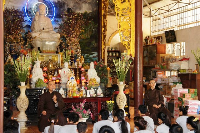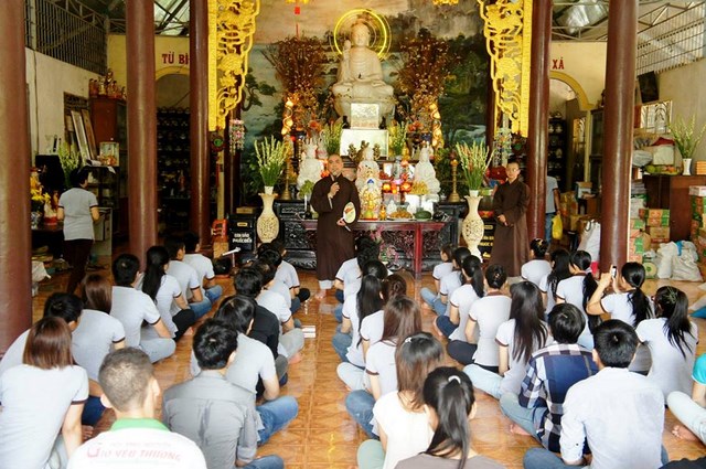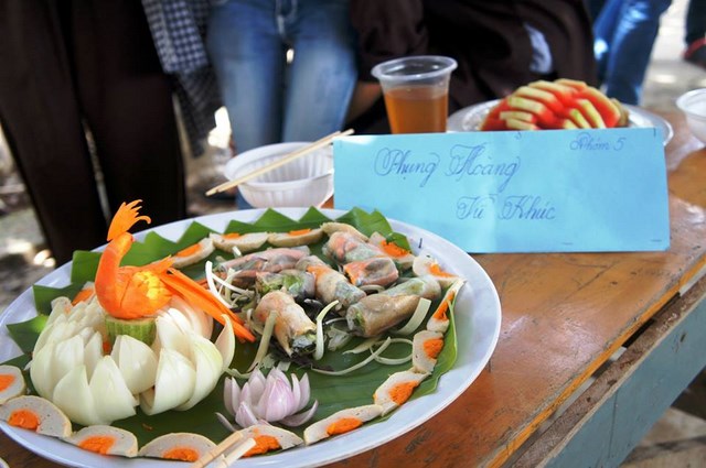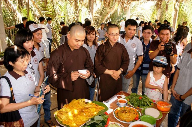 Bên cạnh đó, đại chúng có một ngày trải nghiệm tu tập an vui tại bản tự với việc thực tập : lắng nghe pháp thoại ngắn với chủ đề “Bốn trọng ân”, tụng kinh báo đáp công ơn Cha Mẹ, cúng dường Tam Bảo, Thiền hành từng bước thảnh thơi, sinh hoạt nhạc khúc Thiền ca. Hào hứng và sôi nổi nhất là phần thi nấu các món ăn chay do chính tay thành viên các đội trổ tài với những cái tên thật ấn tượng : Phụng hoàng vũ khúc, bánh ướt chân mộc, chả giò gói trọn yêu thương, bánh xèo hoan hỷ, chè đậu hạt sen tinh khiết.