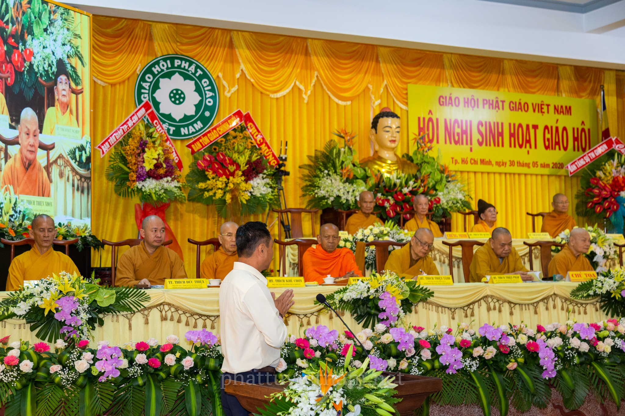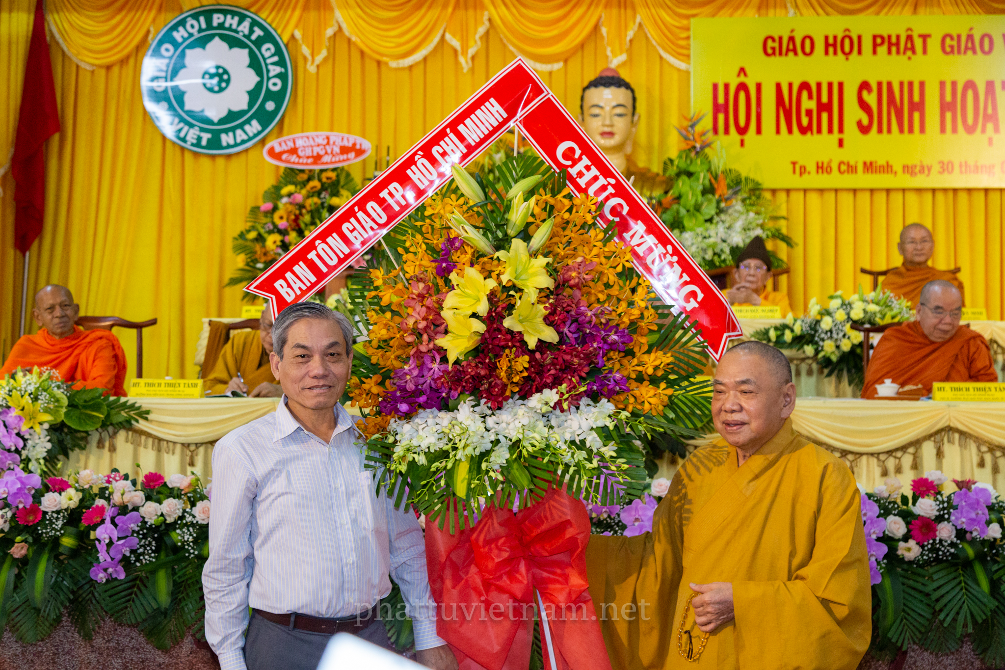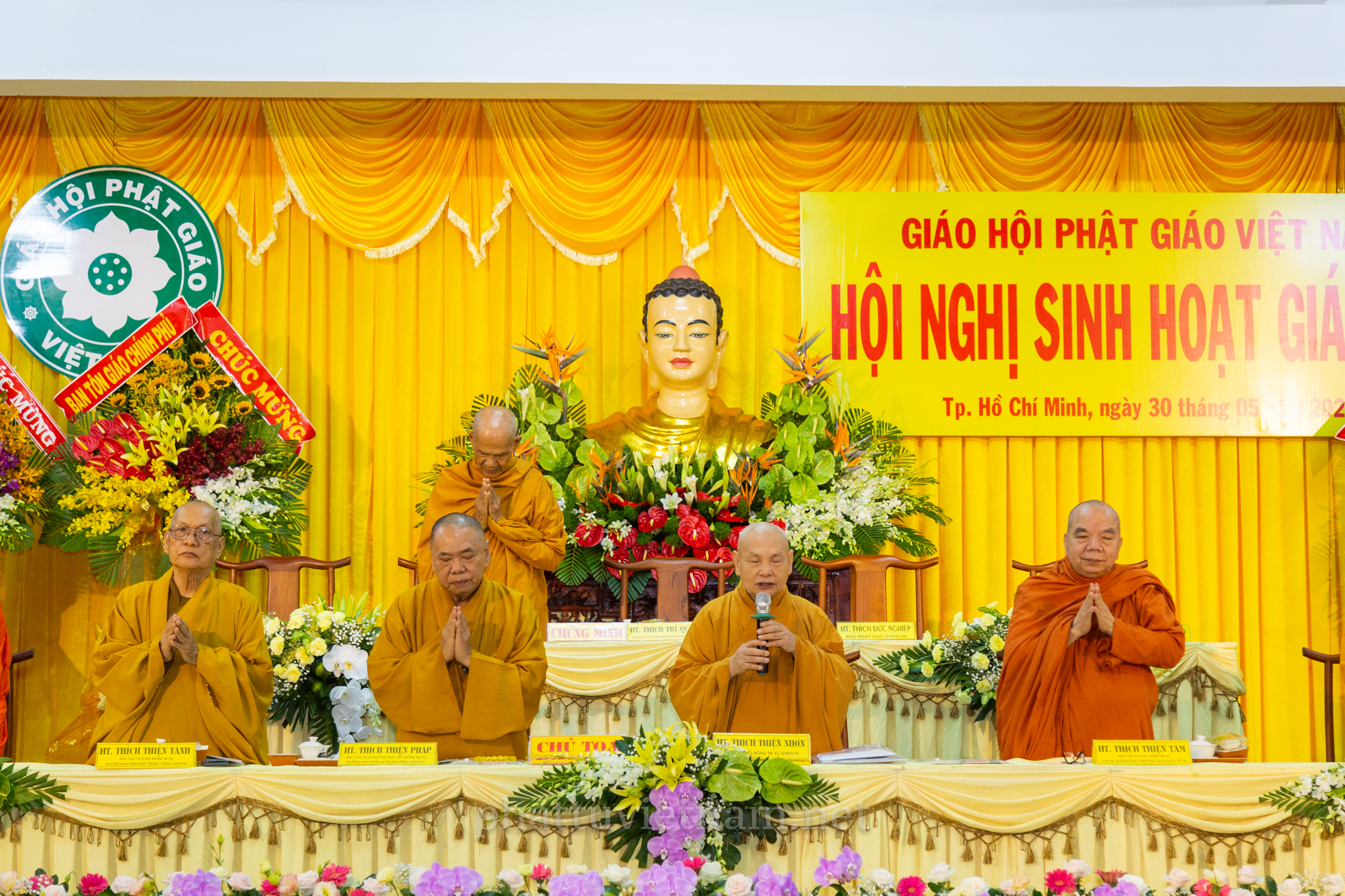 Hội nghị đã diễn ra với sự quang lâm chứng minh của chư tôn đức Giáo phẩm HĐCM, HĐTS GHPGVN: HT.Thích Trí Quảng – Đệ nhất Phó Pháp chủ kiêm Giám luật HĐCM, HT.Thích Đức Nghiệp – Phó Pháp chủ HĐCM GHPGVN, HT.Thích Giác Tường – HT.Thích Viên Minh – đồng Ủy Viên Thường trực HĐCM GHPGVN, HT.Thích Thiện Nhơn – Chủ tịch HĐTS GHPGVN, HT.Thích Thiện Pháp – Phó chủ tịch Thường trực HĐTS GHPGVN, HT.Thích Thiện Tánh, HT.Đào Như, HT.Thích Quảng Xả, HT.Thích Khế Chơn, TT.Thích Thiện Thống – đồng Phó chủ tịch HĐTS, TT.Thích Đức Thiện – Phó chủ tịch kiêm Tổng thư ký HĐTS, HT.Thích Huệ Thông – Phó Tổng Thư ký kiêm Chánh Văn phòng II TƯGH; HT.Thích Huệ Minh – Trưởng ban Nghi lễ T.Ư; HT.Thích Huệ Trí – Trưởng ban Pháp chế T.Ư; HT.Thích Thanh Hùng – Trưởng ban Hướng dẫn Phật tử T.Ư cùng với sự hiện diện của Chư tôn đức Ban Trị sự các tỉnh thành phía Nam.