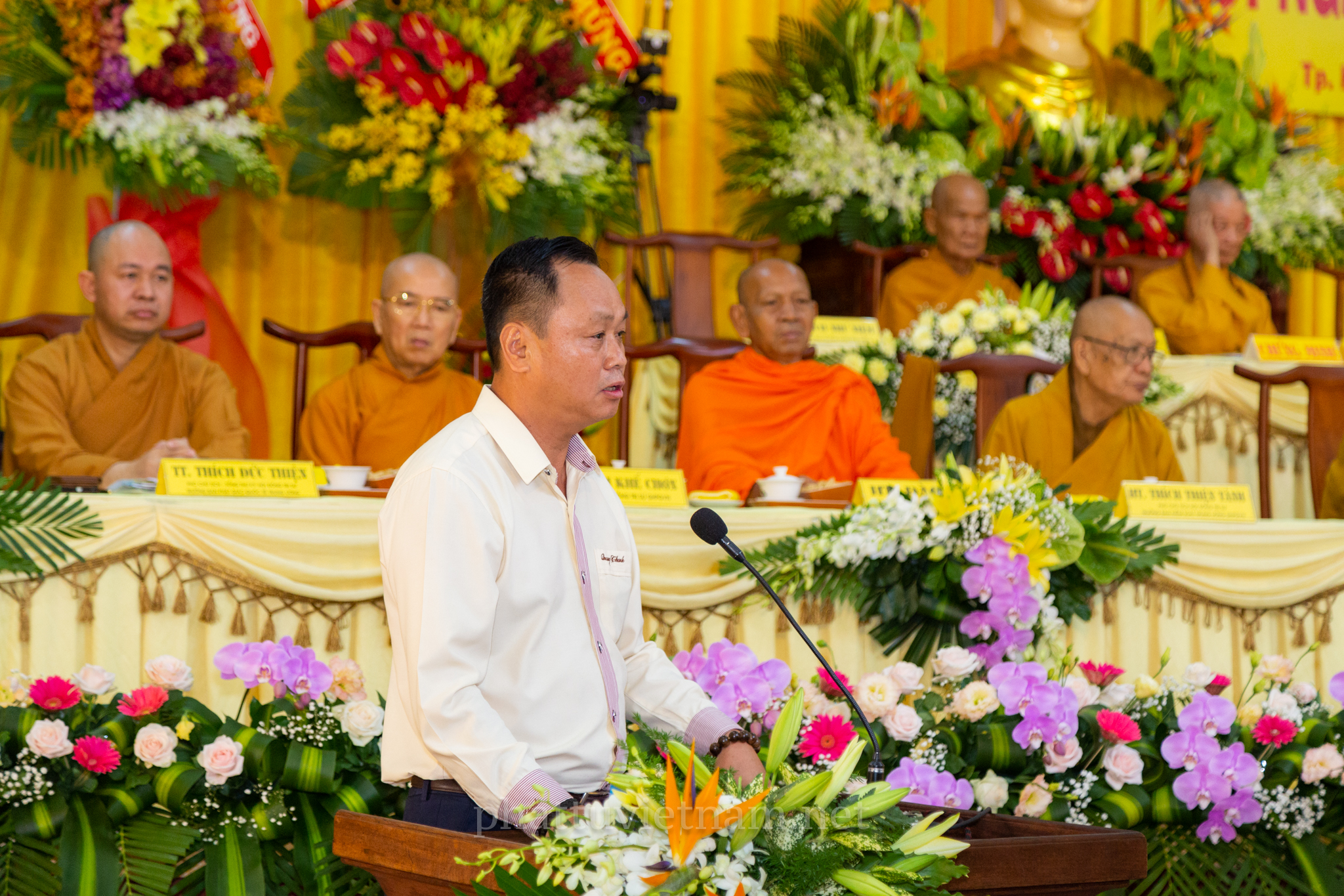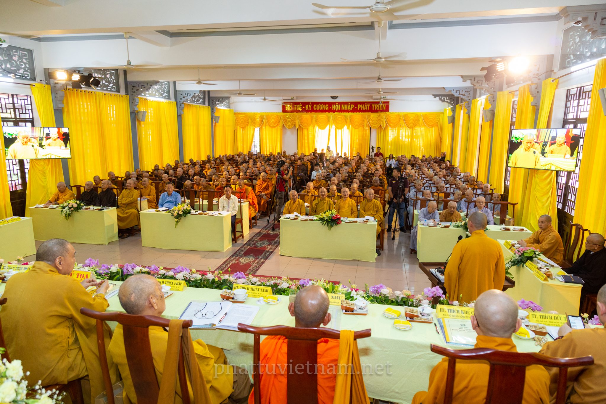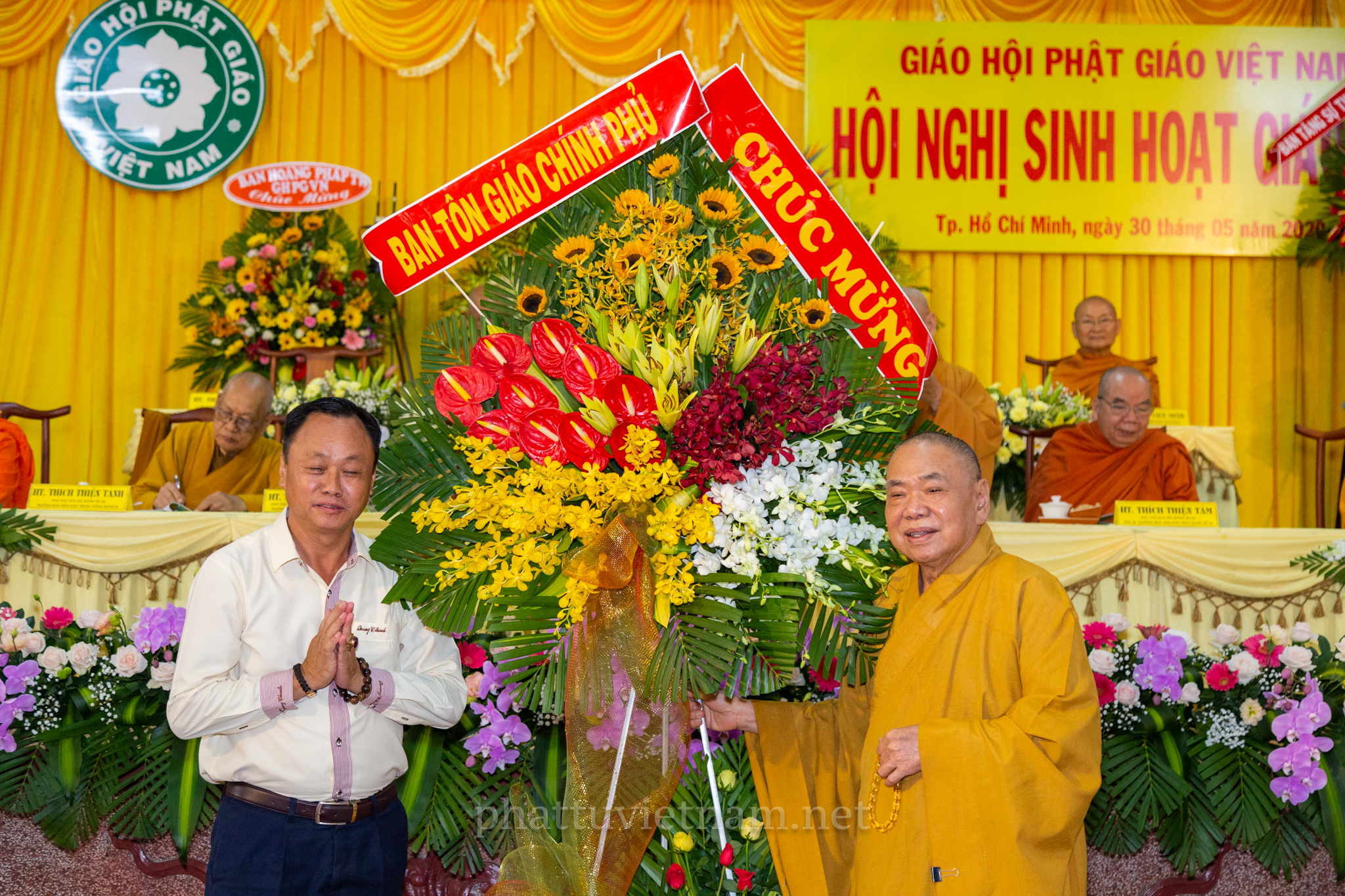 Hội nghị đã diễn ra với sự quang lâm chứng minh của chư tôn đức Giáo phẩm HĐCM, HĐTS GHPGVN: HT.Thích Trí Quảng – Đệ nhất Phó Pháp chủ kiêm Giám luật HĐCM, HT.Thích Đức Nghiệp – Phó Pháp chủ HĐCM GHPGVN, HT.Thích Giác Tường – HT.Thích Viên Minh – đồng Ủy Viên Thường trực HĐCM GHPGVN, HT.Thích Thiện Nhơn – Chủ tịch HĐTS GHPGVN, HT.Thích Thiện Pháp – Phó chủ tịch Thường trực HĐTS GHPGVN, HT.Thích Thiện Tánh, HT.Đào Như, HT.Thích Quảng Xả, HT.Thích Khế Chơn, TT.Thích Thiện Thống – đồng Phó chủ tịch HĐTS, TT.Thích Đức Thiện – Phó chủ tịch kiêm Tổng thư ký HĐTS, HT.Thích Huệ Thông – Phó Tổng Thư ký kiêm Chánh Văn phòng II TƯGH; HT.Thích Huệ Minh – Trưởng ban Nghi lễ T.Ư; HT.Thích Huệ Trí – Trưởng ban Pháp chế T.Ư; HT.Thích Thanh Hùng – Trưởng ban Hướng dẫn Phật tử T.Ư cùng với sự hiện diện của Chư tôn đức Ban Trị sự các tỉnh thành phía Nam.