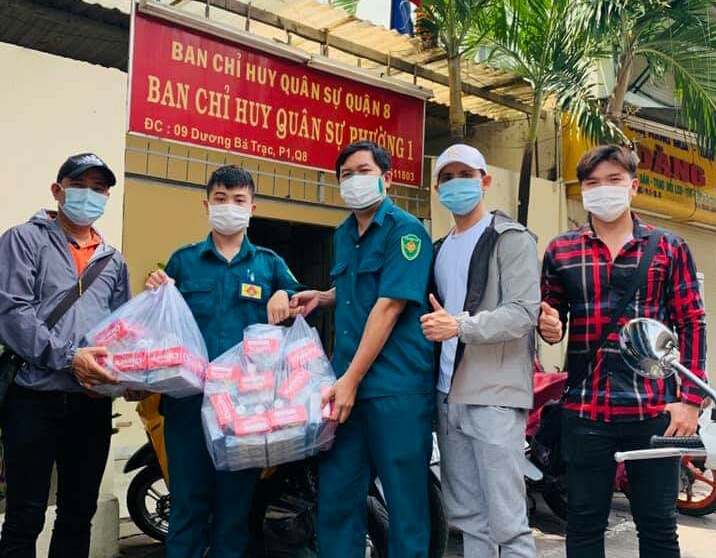 Phật tử Pháp Đức – Uỷ viên Ban Từ thiện GHPGVN TP.HCM trực tiếp trao những Phần quà đến dân quân và cán bộ tại địa phương, mong các anh nhiều sức khỏe để hoàn thành tốt nhiệm vụ của  mình nơi tuyến đồng phòng chống Covid 19
