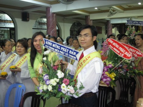 Tiếp đến là nghi thức dâng hoa và đèn của 13 Ban ngành và 23 chúng trực thuộc các ban ngành sinh hoạt và tu học tại chùa chùa Từ Tân.