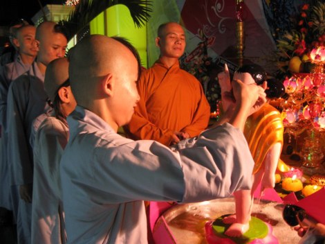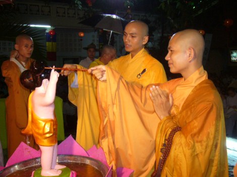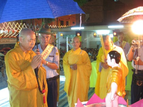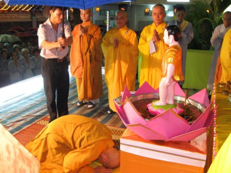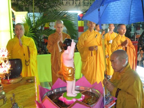 Mở đầu là nghi thức Tắm Phật. TT. Thích Viên Giác – Trụ trì chùa Từ Tân kiêm trưởng ban tổ chức đại Lễ Phật Đản PL 2553 , thực hiện nghi thức thỉnh Phật và chư thiên quang giáng và thủ hộ đạo tràng thanh tịnh. Sau đó TT đã cử hành sái tịnh kim thân tôn tượng Phật sơ sinh .