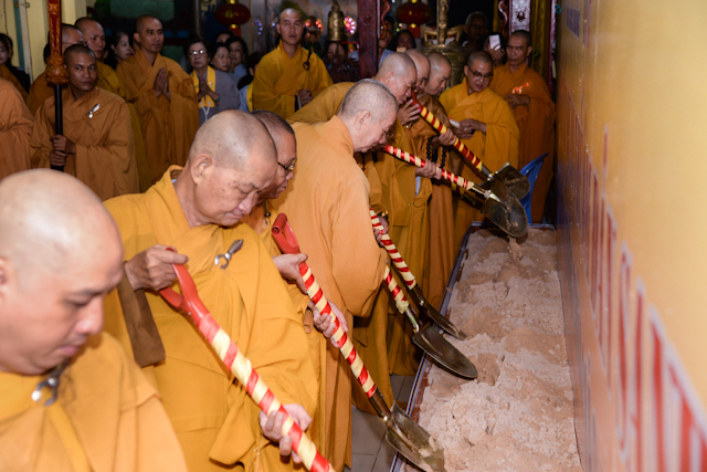 Tiếp theo, Hòa thượng Phó Pháp Chủ cùng Chư tôn đức giáo phẩm niêm hương lễ Phật, tụng kinh, sái tịnh cầu nguyện cho công trình xây dựng chùa Giác Hoằng mọi việc thuận lợi và sớm ngày hoành thành.