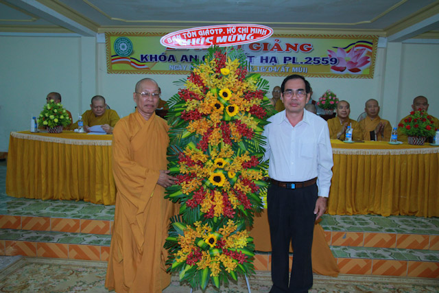 Về phía chính quyền có ông Nguyễn Thanh Xuân – Đại diện Vụ Phật giáo Ban Tôn giáo Chính phủ, ông Huỳnh Ngọc Thành – Nguyên Phó GĐ Sở Nội vụ – Trưởng Ban Tôn giáo TP.HCM, ông Nguyễn Văn Lượng – Trưởng phòng Phật giáo Ban Tôn giáo TP.HCM, bà Vũ Thị Mỹ Ngọc – Chủ tịch UB MTTQ VN Quận 3, cùng các cấp cơ quan, đoàn thể TP.HCM, Quận 3, phường 11 sở tại đồng tham dự.