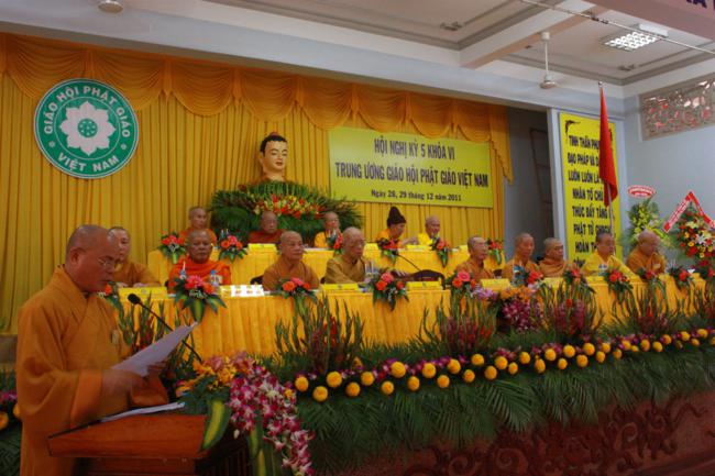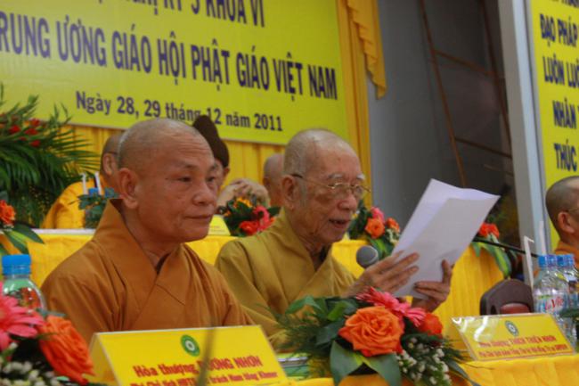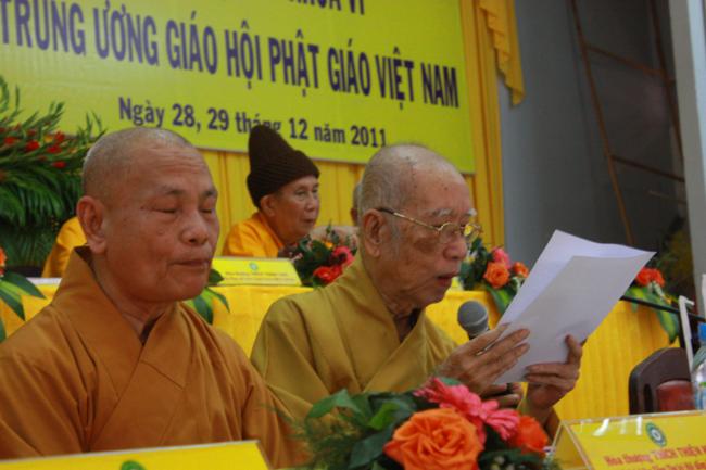 TT.Thích Gia Quang – Phó Tổng Thư ký kiêm Chánh Văn phòng I TƯGH đã báo cáo tổng kết công tác Phật sự năm 2011 và phương hướng hoạt động Phật sự năm 2012 của toàn Giáo hội,
