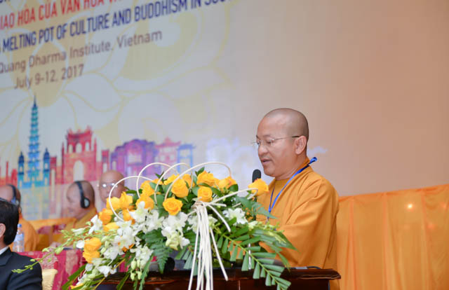 Phát biểu khai mạc Hội thảo, HT.Thích Trí Quảng phó Pháp Chủ HĐCM, Viện trưởng viện nghiên cứu Phật học, Trưởng Ban tổ chức có nhấn mạnh:
