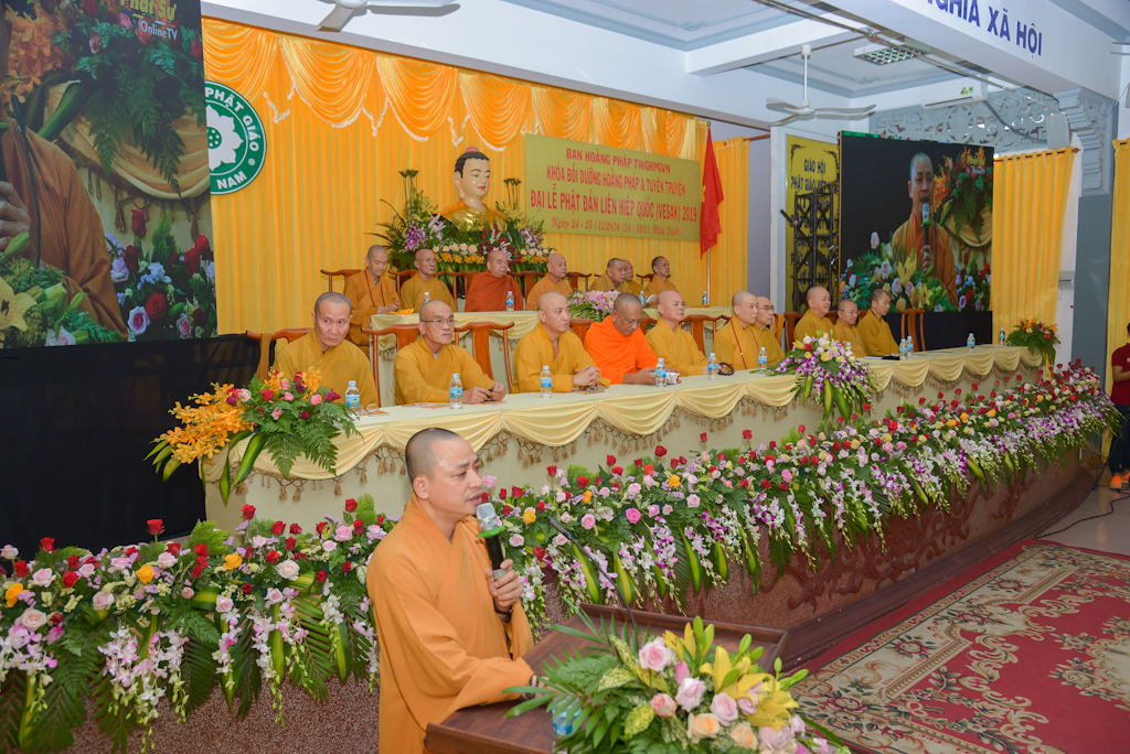 Thay mặt ban tổ chức, HT. Thích Bảo Nghiêm đã phép biểu khai mạc: “Được sự cho phép của Chư Tôn đức Hội đồng Trị sự Trung ương Giáo hội Phật giáo Việt Nam, Ban Hoằng pháp Trung ương GHPGVN tổ chức Khóa bồi dưỡng Hoằng pháp và tuyên truyền Đại lễ Phật đản (Vesak) năm 2019. Khóa bồi dưỡng diễn ra từ ngày 24- 25 tháng 12 năm 2018 (nhằm ngày 18 -19/11 năm Mậu Tuất).