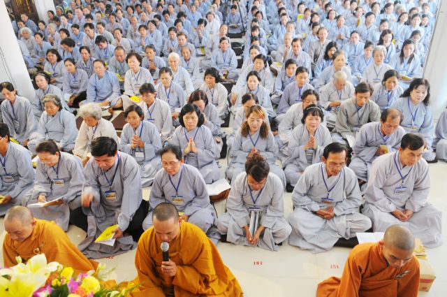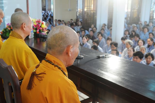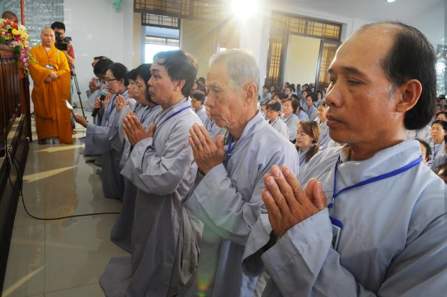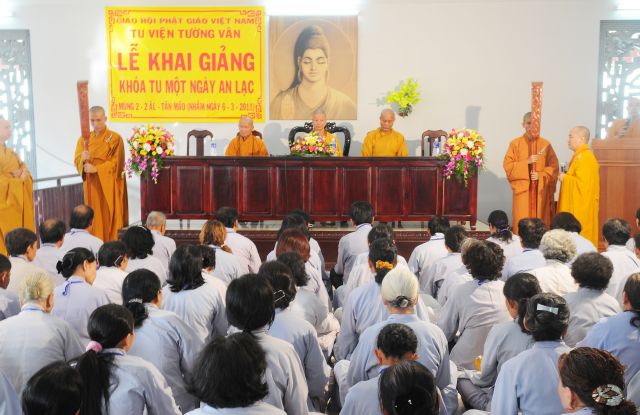 Sau lời phát nguyện chí thành của đại diện Phật tử, Hòa Thượng chứng minh ân cần chỉ dạy: “Trong cuộc sống, để tìm được một phút, một giờ an lạc đã là rất khó, nay quý Phật tử phát tâm tu một ngày an lạc, thì đây là việc làm có ý nghĩa vô cùng lớn lao, chúng tôi rất tán thán. Phía trước chắc chắn sẽ còn nhiều chướng duyên trong quá trình tu tập, nên quý vị phải phát tâm dũng mãnh, vượt qua tất cả để có được một ngày an lạc trọn vẹn.”