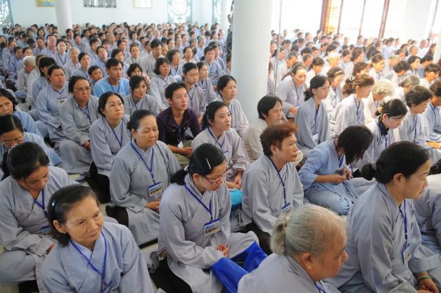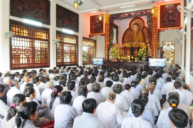 Buổi chiều, Phật tử đạo tràng lắng tâm nghe thời pháp thoại của ĐĐ. Thích Phước Tiến với chủ đề “ Khóa Tu An lạc” trong niềm hoan hỷ vô biên.