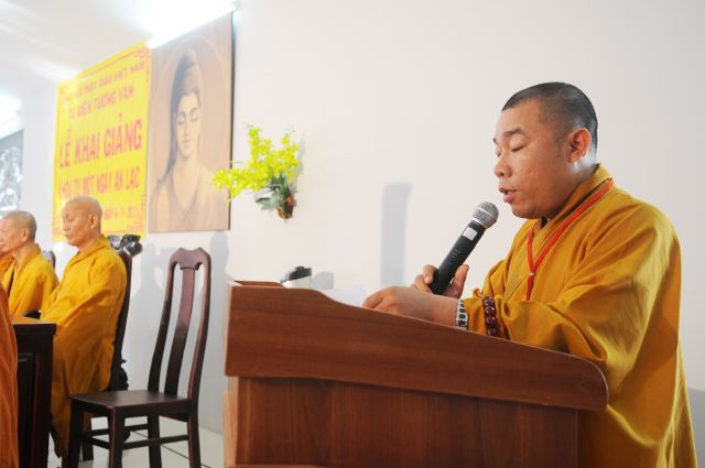 Trong diễn văn khai mạc, ĐĐ. Thích Phước Tiến cho biết: “Mở đạo tràng tu học là ước mơ của Phật tử nơi đây, và cũng là tâm nguyện chúng con khi xây dựng nên tu viện này. Khóa tu một ngày an lạc được thành lập với mục đích mang lại niềm an vui cho tất cả những ai về tham dự khóa tu. BTC sẽ tổ chức mỗi tháng một lần vào ngày mồng 2 âm lịch.”
