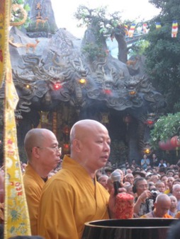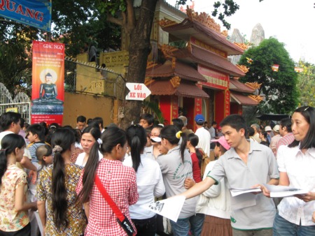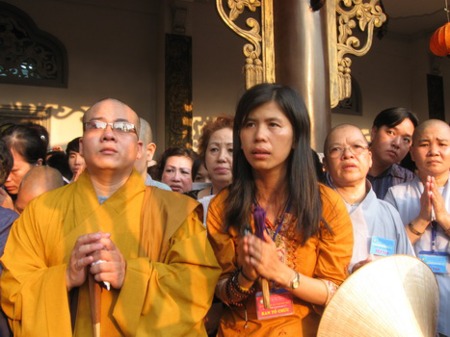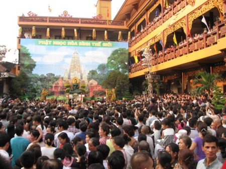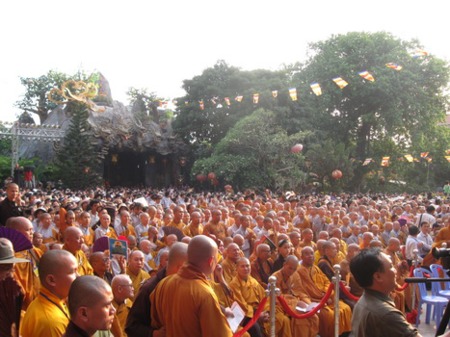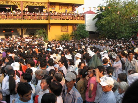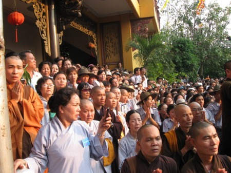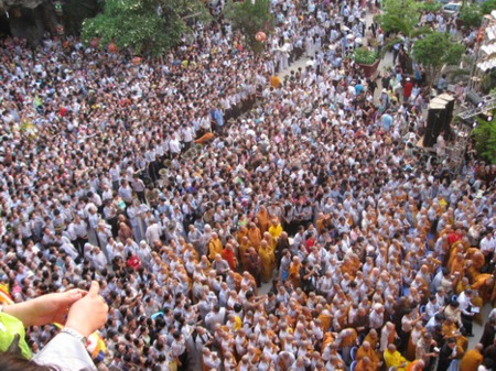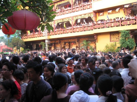 Hơn 10.000 người đứng chật kín sân chùa Phổ Quang và cả hành lang, ban công chùa