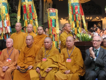 Quang lâm chứng minh buổi lễ có chư Tôn giáo phẩm Hội đồng Chứng minh, Hội đồng Trị sự GHPGVN, Ban Trị sự THPG TP.HCM, ban đại diện 24 quận, huyện của Thành phố và chư Tôn đức các tỉnh lân cận: HT. Thích Hiển Pháp – Phó Pháp chủ HĐCM, HT. Thích Đức Nghiệp – Phó thư ký HĐCM, HT. Thích Thiện Nhơn – Phó Chủ tịch kiêm Tổng thư ký HĐTS, HT. Thích Thiện Tánh – Phó ban thường trực BTS THPG TP.HCM…