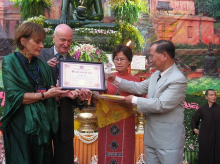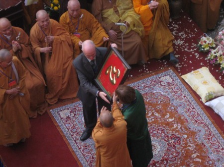 Tại buổi lễ, gia đình Phật tử Ian Green đã dâng lễ vật cúng dường tới GHPGVN. HT. Thích Thiện Nhơn đã thay mặt Trung ương Giáo hội nhận lễ vật cúng dường. Hòa thượng Thích Thiện Tánh đã trao quà lưu niệm cho vợ chồng Phật tử Ian Green.