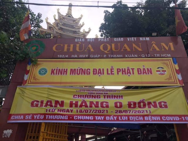 Sáng 18/7, Ban từ thiện xã hội Phật giáo Quận 12 đã khai trương “Gian hàng 0 đồng” tại Chùa Quan Âm (Phường Thạnh Xuân – Quận 12)