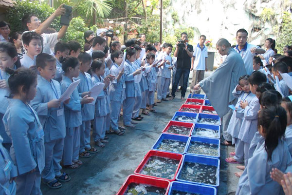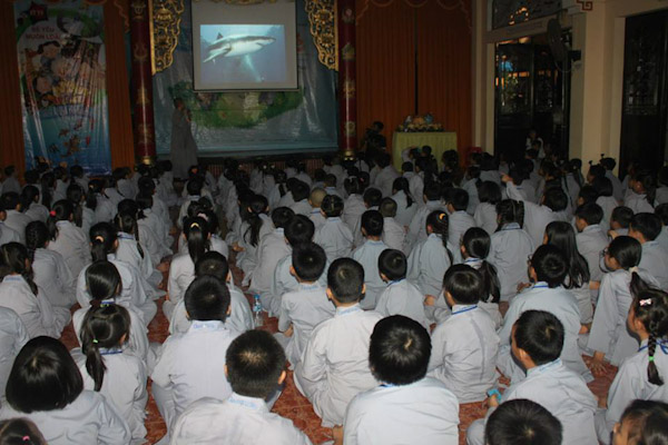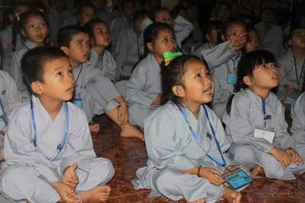 Tham gia khóa tu, các em được nghe Sư cô Huệ Đức, trụ trì Quan Âm Tu Viện, Trưởng Ban tổ chức khóa tu, thuyết giảng về đề tài “Vẻ đẹp và sự sống của muôn loài”, được xem phim về thế giới động vật, được xem múa rối “Con mèo và chú bé lười” (do CLB Múa rối Thằng Bờm, nhà Thiếu Nhi Q.8 biểu diễn). Bên cạnh đó, các em còn học cách làm con rối (do Họa sĩ Trí Đức hướngdẫn) rồi sau đó tổ chức cho các em thi làm con rối. Cũng trong khuôn khổ của chương trình khóa tu, các em còn được các sư cô hướng dẫn tập xá chào, lễ lạy và đứng ngồi trang nghiêm, tập ngồi thiền và rải từ bi tâm đến mọi người, mọi loài, trì chú của Bồ tát Đại Bi Quán Thế Âm & Bồ tát Đại Trí Văn Thù, ăn cơm trong chánh niệm và dự lễ phóng sanh.