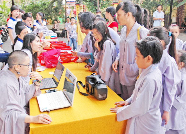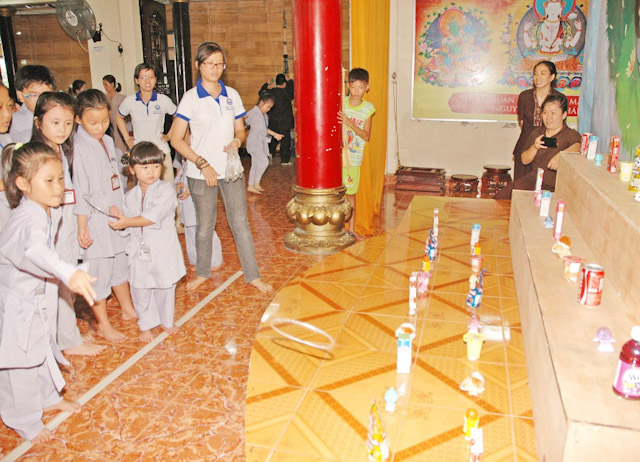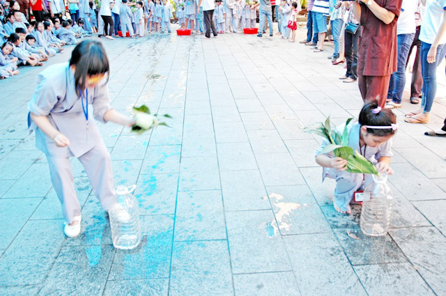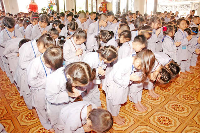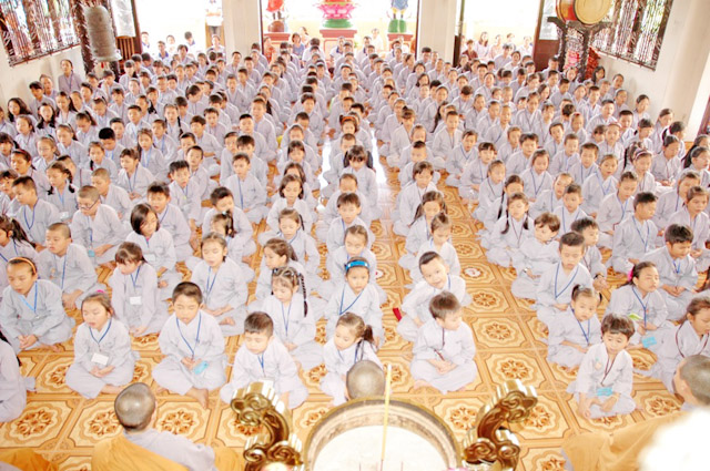 Đến tham gia khóa tu (khoảng 200 tu sinh),dưới sự điều phối chương trình do Sư cô Thích Nữ Huệ Đức bên cạnh đó cũng có sự hổ trợ của MC Hà Trinh, đạo diễn Sơn Võ và các bạn tình nguyện viên cho khóa tu. Trong khóa tu các bé được cách lạy và cách xá chào, bên cạnh đó các bé được học cách ngồi thiền rải tâm từ bi,trì chú của Bồ Tát Đại Bi Quán Thế Âm và Bồ Tát Đại Trí Văn Thù.