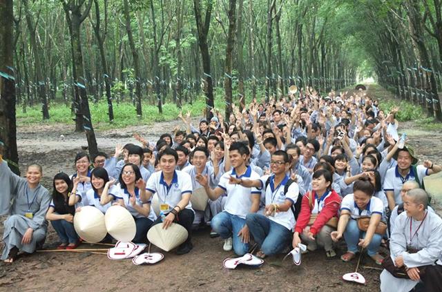 Trên con đường về với Củ Chi, về với Tu Viện Linh Thứu – nơi mà các bạn trẻ sẽ được hướng dẫn tu tập một ngày cùng với “Giảng sư Idol” – Thầy Thích Thiện Xuân, đoàn đã tranh thủ tổ chức quay phim và chụp hình lưu niệm cho các em với con đường cao su đẹp nhất ở Củ Chi.