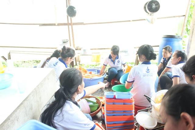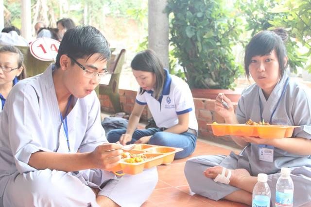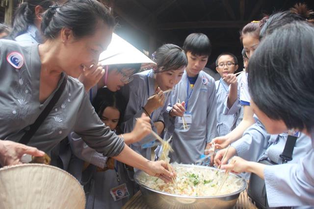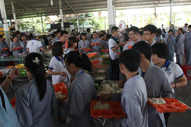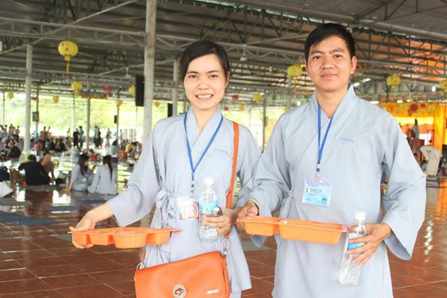 Sau buổi thực tập thiền và Lễ cúng ngọ, Thầy Thiện Xuân đã “đãi” các tu sinh một bữa trưa thật ngon miệng với nhiều sự lựa chọn hấp dẫn. Các bạn trẻ xếp thành từng hàng ngay ngắn, vừa niệm A Di Đà Phật vừa tiến tới nhận phần trưa của chính mình trong sự hoan hỷ