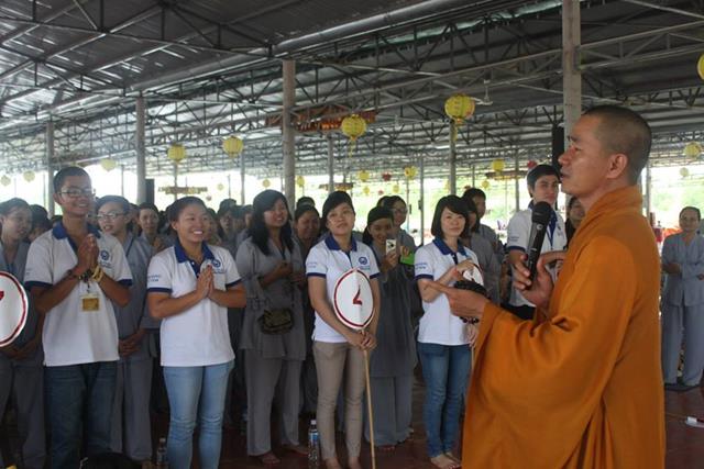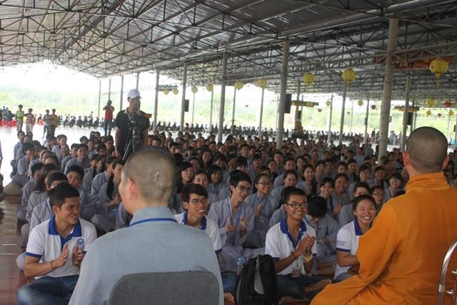 Thầy thuyết giảng cho các bạn trẻ của khóa tu một chủ đề khá quen thuộc: Tri Ân. Chỉ 2 từ ngắn gọn thôi nhưng đã bao hàm được hết ý nghĩa ẩn sâu trong nó. Có lẽ, đa phần các bạn đều hiểu nhưng để hiểu thực sự đúng và biết cách quán chiếu lại mình, theo lời Thầy Thiện Xuân: bạn trẻ trước hết nên biết Tri Ân Đấng Từ Phụ – Người cha lành đã độ mọi chúng sanh thoát bến mê, tìm về nẻo giác; Kế đến biết tri ân Tổ quốc, tri ân những anh hùng liệt sĩ đã hy sinh máu xương và ngã xuống vì nền độc lập cho nước nhà, cho thế hệ con cháu đời sau; Ngoài ra, phải biết tri ân công đức sinh thành của mẹ cha mà chăm ngoan học hành, hiếu đạo làm con. Chỉ cần sống trọn & giữ cho tròn 3 chữ Ân trên thì các bạn trẻ đã trở thành một người tốt rồi và qua những việc làm thiện lành của chính mình, các bạn đã biết cách tri ân với cuộc đời này.