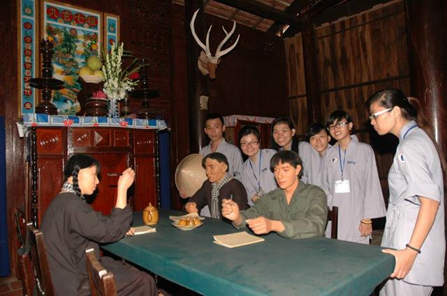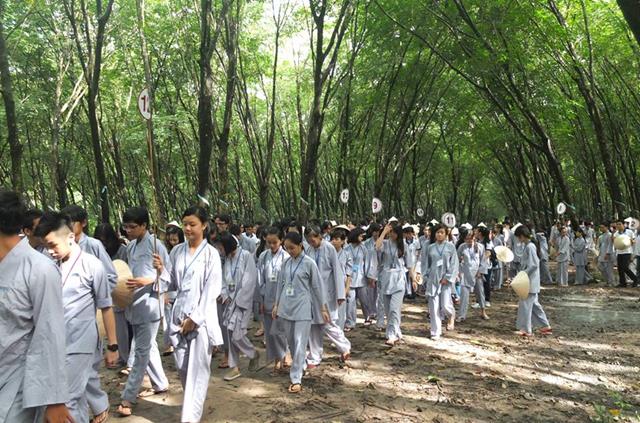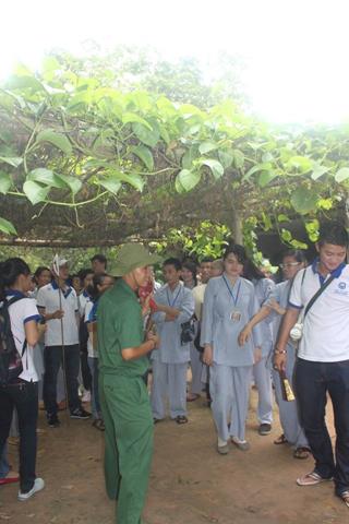 Nhưng có lẽ hoạt động vui nhất cũng là mệt nhất, đúng tính chất dã ngoại nhất vẫn là “cuốc bộ” đi dọc hết khu địa đạo, được chui địa đạo, được hướng dẫn viên thuyết minh từng điểm đến: từ cách các chiến sĩ du kích đã đào đường hầm như thế nào? khu căn cứ địa dưới hầm được thiết kế ra sao? Đến Bếp Hoàng Cầm được kê như thế nào mà nấu ăn không khói, qua mắt được quân địch trong nhiều năm trời ròng rã kháng chiến? …. Mệt thì có mệt nhưng các tu sinh trẻ vẫn rất hăng say thám hiểm, có nhóm bạn trẻ còn vừa đi vừa hát vang, rồi còn đua nhau “chui” hầm, lem luốc và ướt đẫm mồ hôi là thế nhưng ai cũng cười rất tươi.