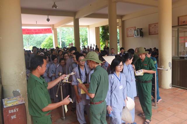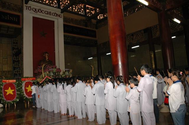 Để thực hiện đúng lời dạy của quý Thầy, cả đoàn Gieo Hạt Từ Tâm sau bữa trưa lại tập trung lên xe hướng về Địa Đạo Củ Chi. Điểm dừng đầu tiên là tại Đền Bến Dược, ban tổ chức tạo điều kiện để các bạn trẻ vào dâng hoa, thắp hương tưởng niệm các anh hùng liệt sĩ đã oanh liệt ngã xuống.