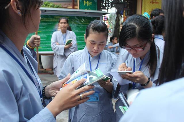 Sau buổi thuyết giảng của giảng sư, các tu sinh trẻ được các sư cô hướng dẫn trì tụng thần chú của Đức Văn Thù Bồ tát và Quán Thế Âm Bồ tát để tăng trí tuệ và mở rộng tâm từ
