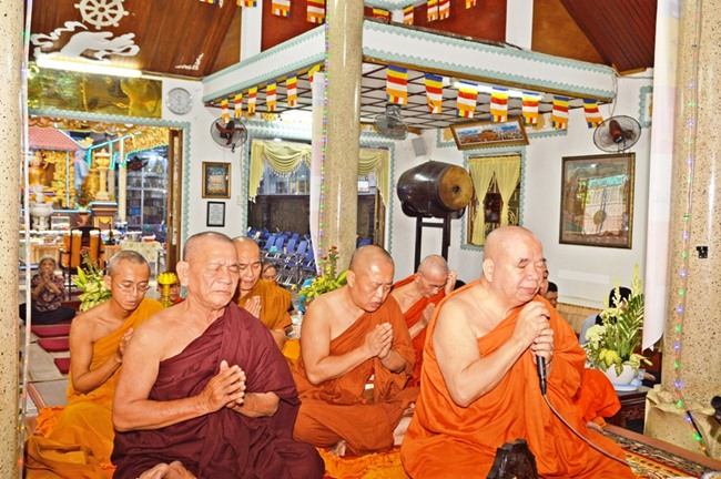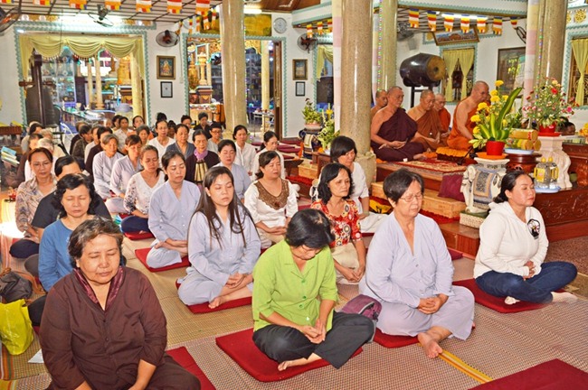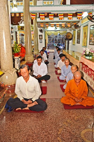 Sau khi tụng kinh lễ bái Tam Bảo các Phật tử được hướng dẫn cách ngồi thiền.