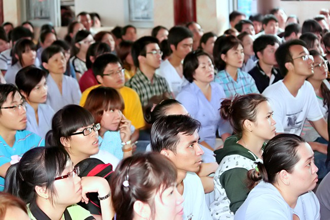 Ngoài ra, một cảm giác rất thoải mái an lạc trong khi nghe Thượng tọa thuyết giảng cũng là một nhân tố tạo nên sức hútlớn đối với người muốn tìm cầu học đạo. Nhìn từ Giảng đường chính cho đến 2 tầng Chánh điện và khắp khuôn viên chùa Từ Tân, người ngồi san sát, ánh mắt dán chặt trên màn hình, chăm chú lắng nghe từng Pháp âm vang lên.