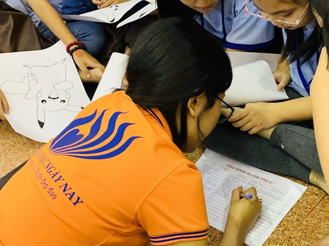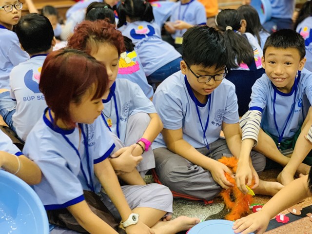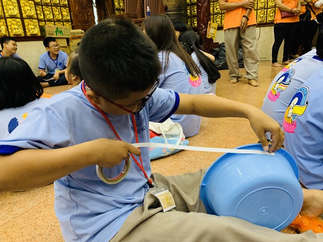 Để chuẩn bị cho lễ rửa chân trong kỳ tu học tiếp theo, hơn 100 thau được chia cho 10 (mười) gia đình: Trí Tuệ, Từ Bi, Hạnh Phúc, Vị Tha, Yêu Thương, Chia Sẻ, Bao Dung, Tha Thứ, An Lạc, Hoan Hỷ và nhiệm vụ các bé chính là trang trí chúng. Nhiệm vụ không chỉ mang tính làm đẹp, mà còn gửi gắm cả tình yêu thương qua sự hồn nhiên, mộc mạc tự tâm hồn ngây thơ của các bé.