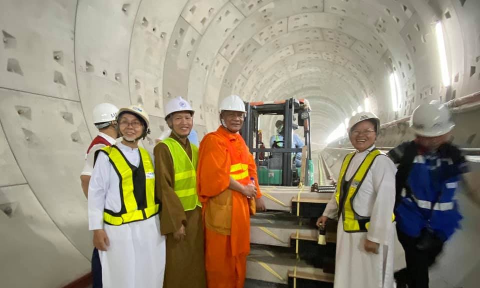 Tháp tùng phái đoàn còn có sự hiện diện của ông Bùi Xuân Cường – trưởng Ban quản lý đường sắt đô thị TP.HCM, đại diện lãnh đạo các ban thường trực, văn phòng MTTQ 24 quận huyện, các chức sắc tôn giáo TP.