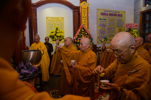 Tại buổi lễ, Chư tôn Hòa thượng chứng minh, chư tôn đức Tăng Ni đã quang lâm dâng hương, chú nguyện và làm lễ sái tịnh an vị tôn tượng Bồ tát Quan Thế Âm tại Điện Quan Âm vừa được xây dựng trên khuôn viên chùa Phước Huệ.