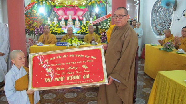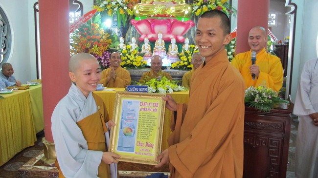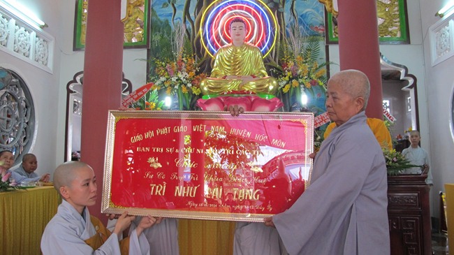 Về phía chư Ni có Ni Trưởng Thích nữ Bửu Hòa, Phó BTS kiêm Trưởng Phân Ban Ni giới PG Hóc Môn, Ni sư Thích nữ Huệ Từ – UV Thường trực HĐTS, Chánh Thư ký Phân Ban Ni giới TW cùng chư tôn thiền đức Tăng Ni trong thường trực BTS PG H. Hóc Môn, chư tôn đức trụ trì, quý Phật tử trong các tự viện đã đến chứng minh và chúc mừng.