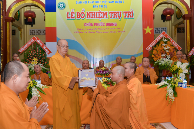 Hoà thượng Thích Thiện Tánh trao quyết định trụ trì cho ĐĐ. Thích Quảng Thắng