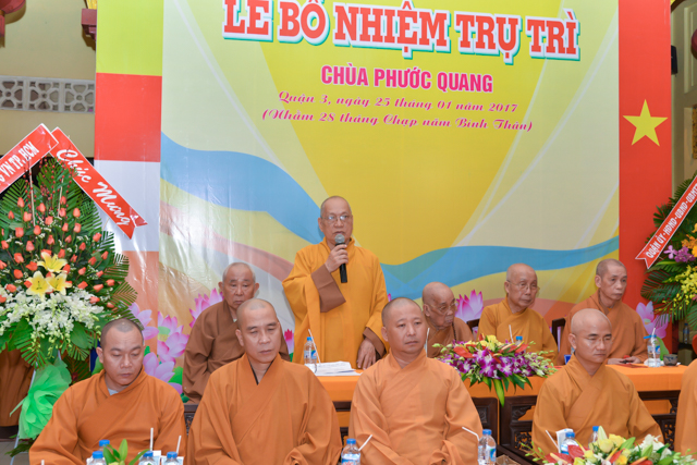 Cuối cùng là lời đạo từ của Hoà thượng chứng minh, thay mặt cho Thường trực BTS Phật giáo Thành phố Hoà Thượng Thích Thiện Tánh đã khuyến tấn đến đại đức Tân Trụ trì cố gắng, nỗ lực hoàn thành tốt trọng trách mà Giáo hội giao phó.