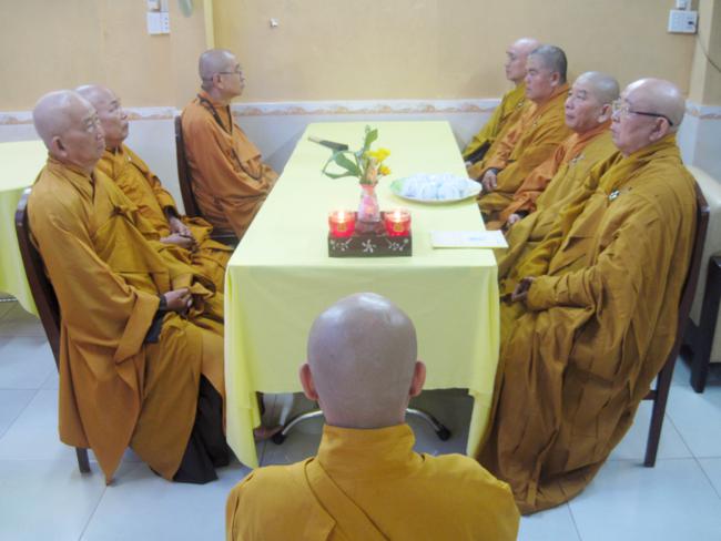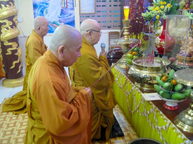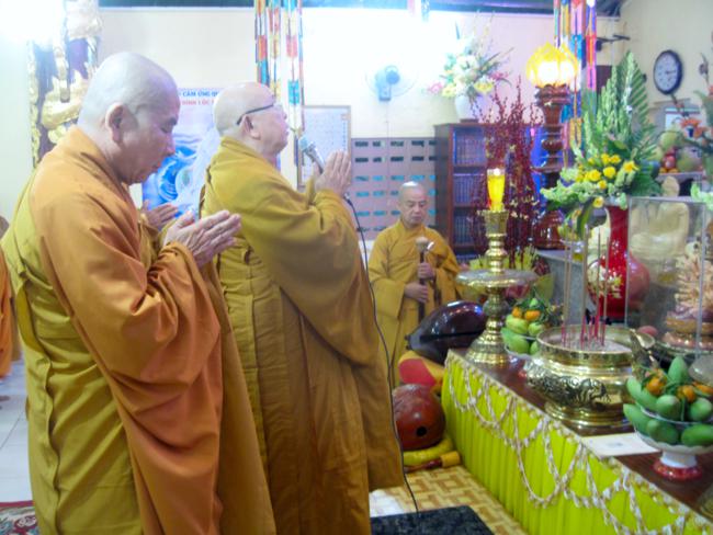 Chứng minh và tham dự lễ Bố-tát có: HT.Thích Như Tín – Phó BTS kiêm chánh Thư ký Ban Tăng sự THPG.TPHCM – Chứng minh Ban đại diện PG Q.Tân Bình; HT.Thích Minh Cảnh, HT.Thích Huệ Xướng, HT.Thích Minh Trí- Chứng minh BĐD PG Q.TB; TT.Thích Thanh Sơn – Phó Ban Đại diện PG QTB; TT.Thích Thiện Hoà – Phó Ban đại diện PG Q Tân Phú- Cố vấn BĐD PG Q.TB; ĐĐ.Thích Từ Trí – Chánh Thư ký; chư Tôn đức trong BĐD và chư Tôn đức Tăng.