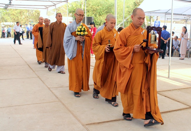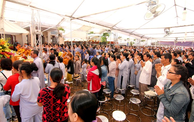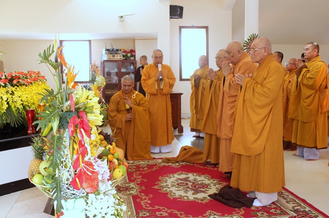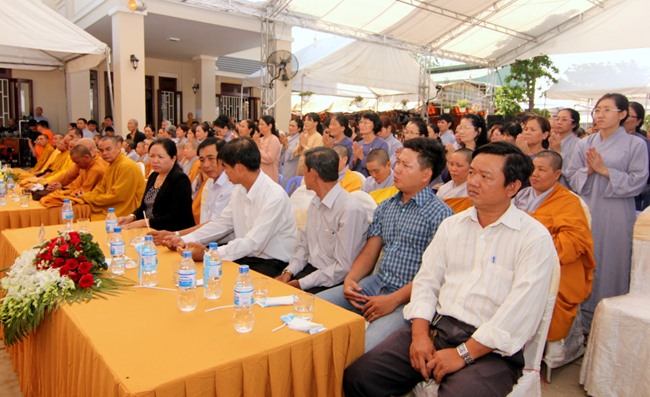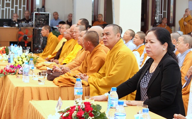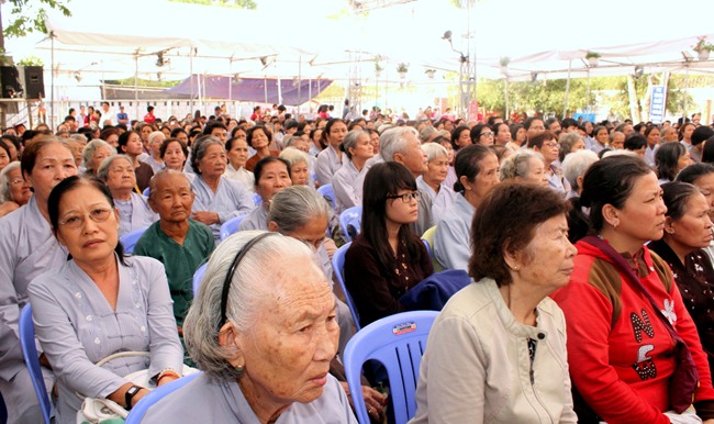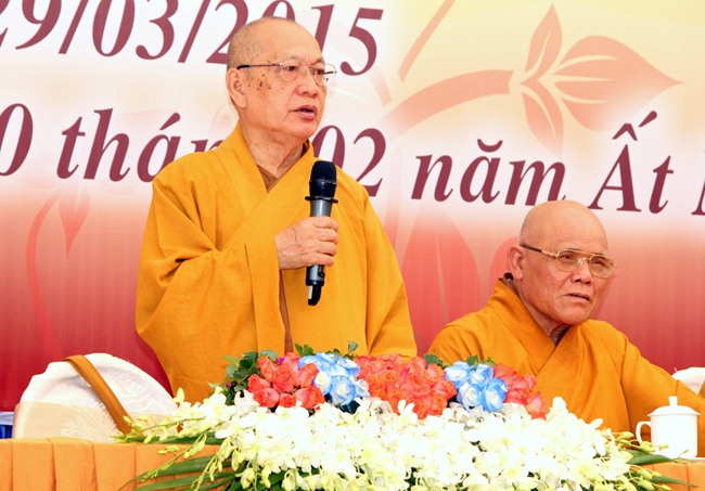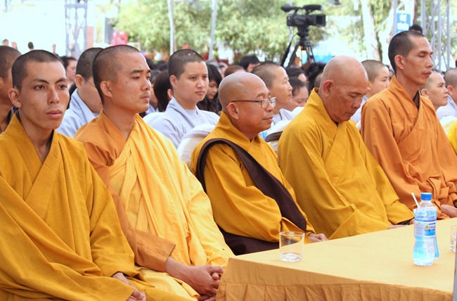 Sau lời phát biểu của phật tử, toàn thể đạo tràng đã cung kính lắng nghe đạo từ của HT Thích Thiện Tánh – Phó Chủ tịch HĐTS T.Ư GHPGVN. Từng lời dạy của Hòa thượng hết sức chân thành, cảm động, xúc tích, đủ nghĩa trong từng câu, từng lời. Hòa thượng vừa khuyến tấn bên này, vừa nhắc nhở bên kia, tạo thành mối quan hệ bền vững giữa Phật giáo và Chính quyền trong việc làm lợi ích cho con người, cho chúng sinh.