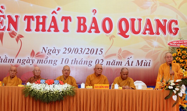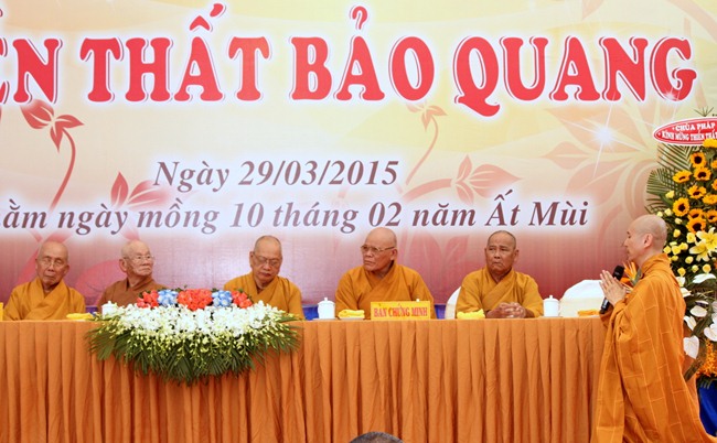 Quang lâm chứng minh buổi lễ có: HT Thích Tịnh Hạnh – UV HĐTS T.Ư GHPGVN – Phó BTS Thành hội PG TP HCM – Trưởng ban Tài chính Thành hội PG TP HCM; HT Thích Thiện Tánh – Phó Chủ tịch HĐTS T.Ư GHPG VN – Trưởng ban Kiểm soát T.Ư GHPGVN – Phó Ban Thường trực BTS Thành hội PG TP HCM; HT.Thích Viên Giác – UV Ban Hoằng Pháp T.Ư GHPGVN – Phó Ban Văn Hóa PG TP.HCM – Trụ trì chùa Từ Tân; TT.Thích Chân Quang – Phó ban Kinh tế Tài chánh T.Ư GHPGVN – Trụ trì Thiền Tôn Phật Quang; ĐĐ Thích Thiện Hiếu – UV BTS PG tỉnh Tây Ninh.
