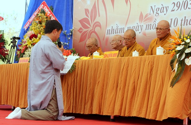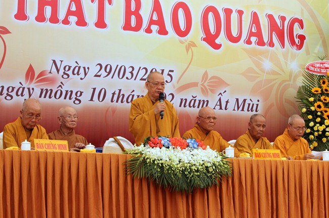 Tiếp theo, sau nghi thức truyền thống Phật giáo niệm Phật cầu gia hộ, HT Thích Viên Giác – UV Ban Hoằng Pháp T.Ư GHPGVN – Phó Ban Văn Hóa PG TP.HCM đã đọc diễn văn chào mừng và trình bày mục đích của buổi Lễ.