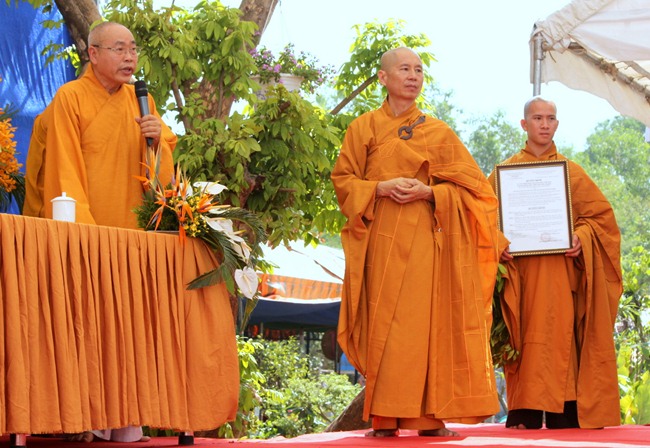 Dịp này, HT Thích Tịnh Hạnh – UV HĐTS T.Ư GHPGVN – Phó BTS Thành hội PG TP HCM – Trưởng ban Tài chính Thành Hội PG TP HCM trao quyết định cơ sở tôn giáo cho TT.Thích Chân Quang.