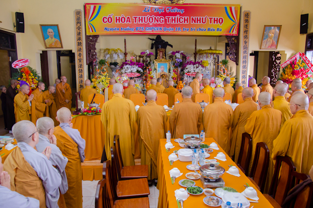 Tại buổi lễ, Chư tôn giáo phẩm chứng minh đã quang lâm Giác Linh Đài thành kính dâng hương tưởng niệm cố HT.Thích Như Thọ, nhất tâm nguyện cầu Giác Linh cố Hòa thượng cao đăng thượng phẩm, quả chứng vô sanh.