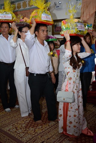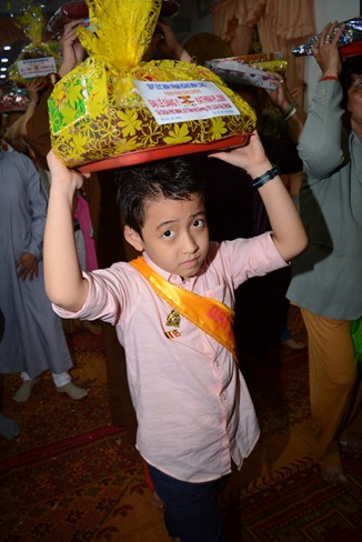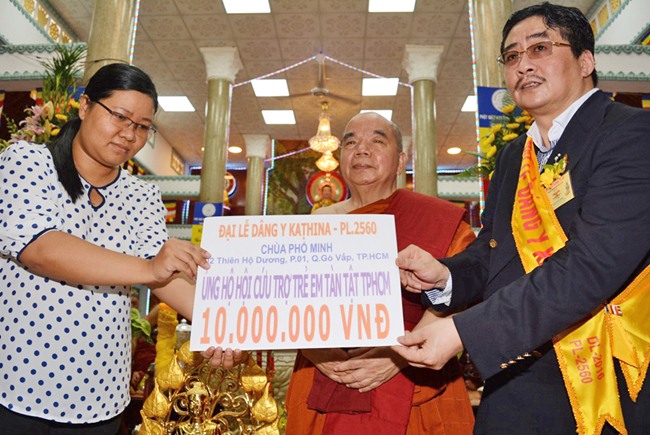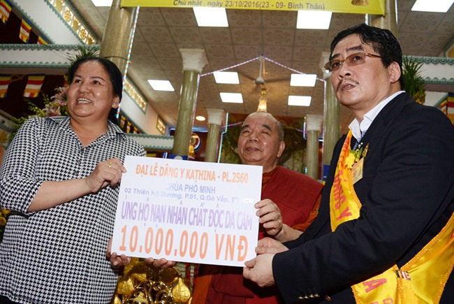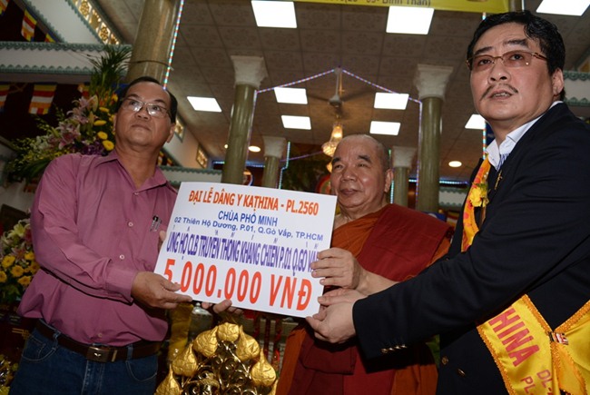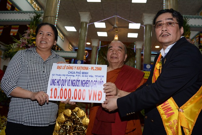 Tại buổi lễ dâng Y, HT. Thích Thiện Tâm và gia đình thí chủ Phạm Hoàng Minh Long, pháp danh Đức Minh và các thí chủ đã hùn phước ủng hộ các chương trình từ thiện của MTTQVN Q. Gò Vấp.