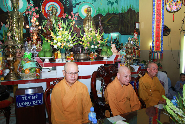 Quang lâm chứng minh và tham dự buổi lễ có HT.Thích Thiện Nhơn – Phó chủ tịch TT kiêm tổng thứ ký HĐTS, HT.Thích Thiện Đức – UVHĐTS – Phó trưởng BTS PG TP.HCm, HT.Thích Thanh Vân – Phó trưởng ban TT BTS PG Q.3, HT.Thích Thiện Ngộ – Trưởng BTS PG Q.11, HT.Thiện Thiện Ý – Trưởng ban nghi lễ PG Q.3, cùng chư tôn đức Tăng các tự viện các nơi đồng tham dự.