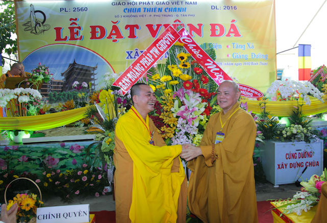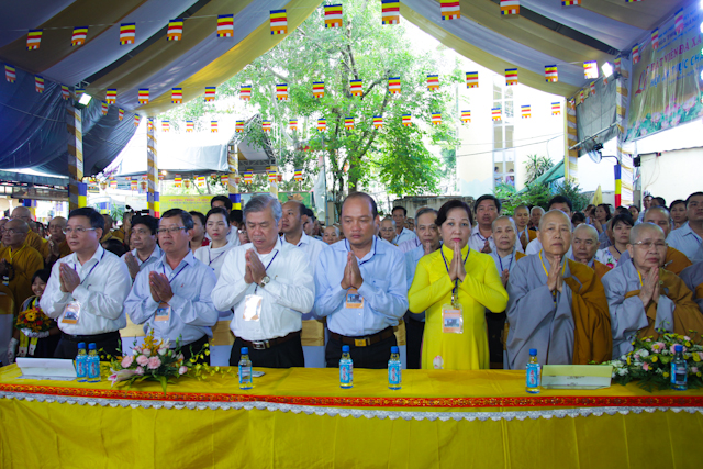 Về phía lãnh đạo chính quyền có ông Bùi Hữu Dược – Vụ trưởng vụ Phật giáo BTG Chính phủ, ông Nguyễn Ngọc Phong – Phó Chủ tịch UBMTTQ TP.HCM, cùng đại diện các sở ban ngành TP.HCM, Quận ủy, UBND, UBMTTQ quận Tân phú và phường sở tại đồng tham dự.