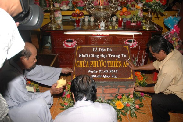 Được sự cho phép từ giáo hội, chính quyền địa phương, bổn tự tổ chức lễ đặt đá trùng tu ngôi chánh điện chùa Phước Thiện An. Theo ghi nhận, chùa Phước Thiện An do thầy Thích từ Bi khai sơn vào năm 1959, thời điểm lúc đầu là mái tranh vách lá. Trải qua ba đời giám tự sau thời gian chấp vá xây dựng bấy giờ có phần khang trang hơn. Do nhu cầu tu tập, số lượng Phật tử đến chùa ngày càng đông trong khi bổn tự chật hẹp, điều kiện sinh hoạt qúa ẩm thấp, không đủ sức phục vụ cho tập thể an tâm tu tập.