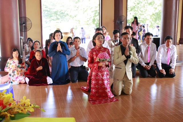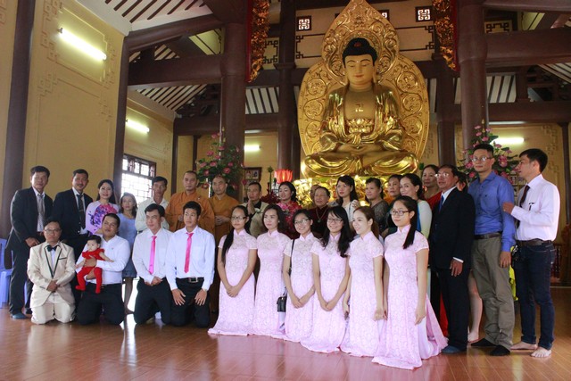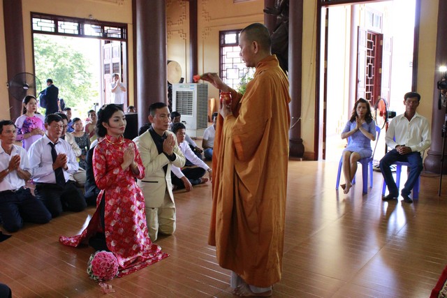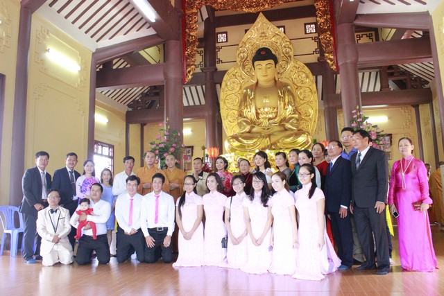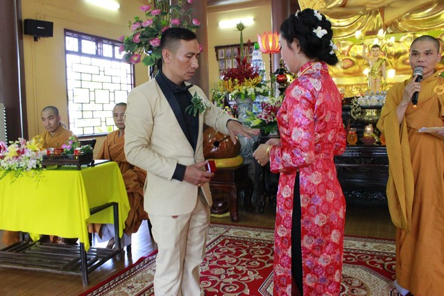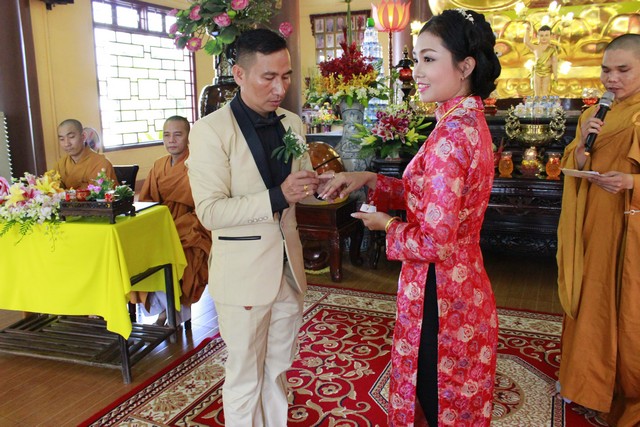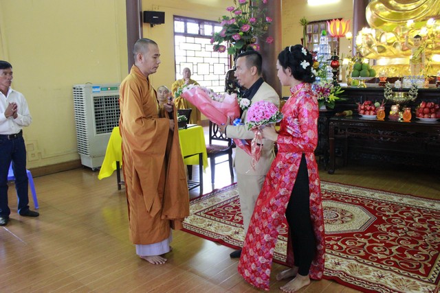 Tiếp theo đó, tân lan tân nương đã đối trước Tam Bảo dâng lời phát nguyện đời sống chung sống thuận hòa với nhau theo lời Phật dạy, làm tròn bổn phận người Phật tử tại gia. Cuối lời ĐĐ. Tri sự đã gửi hoa và những lời chúc phúc bình an đến hai Phật tử là tân lan tân nương cũng như cha mẹ quan viên hai họ.