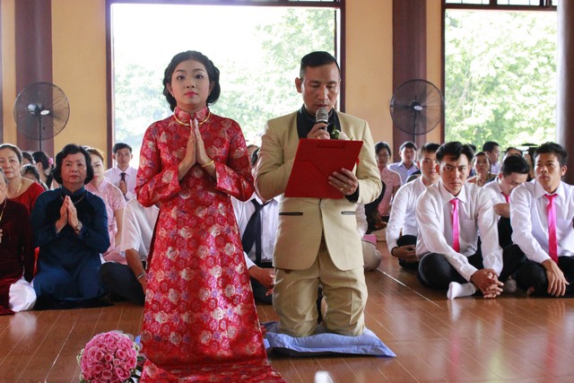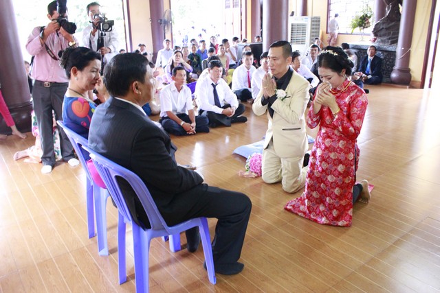 Buổi lễ diễn ra với sự chứng minh của ĐĐ. Thích Minh Nhựt – Tri sự chùa Phổ Quang cùng chư Tăng tại bổn tự, cũng như sự tham dự của đại diện quan viên hai họ.
