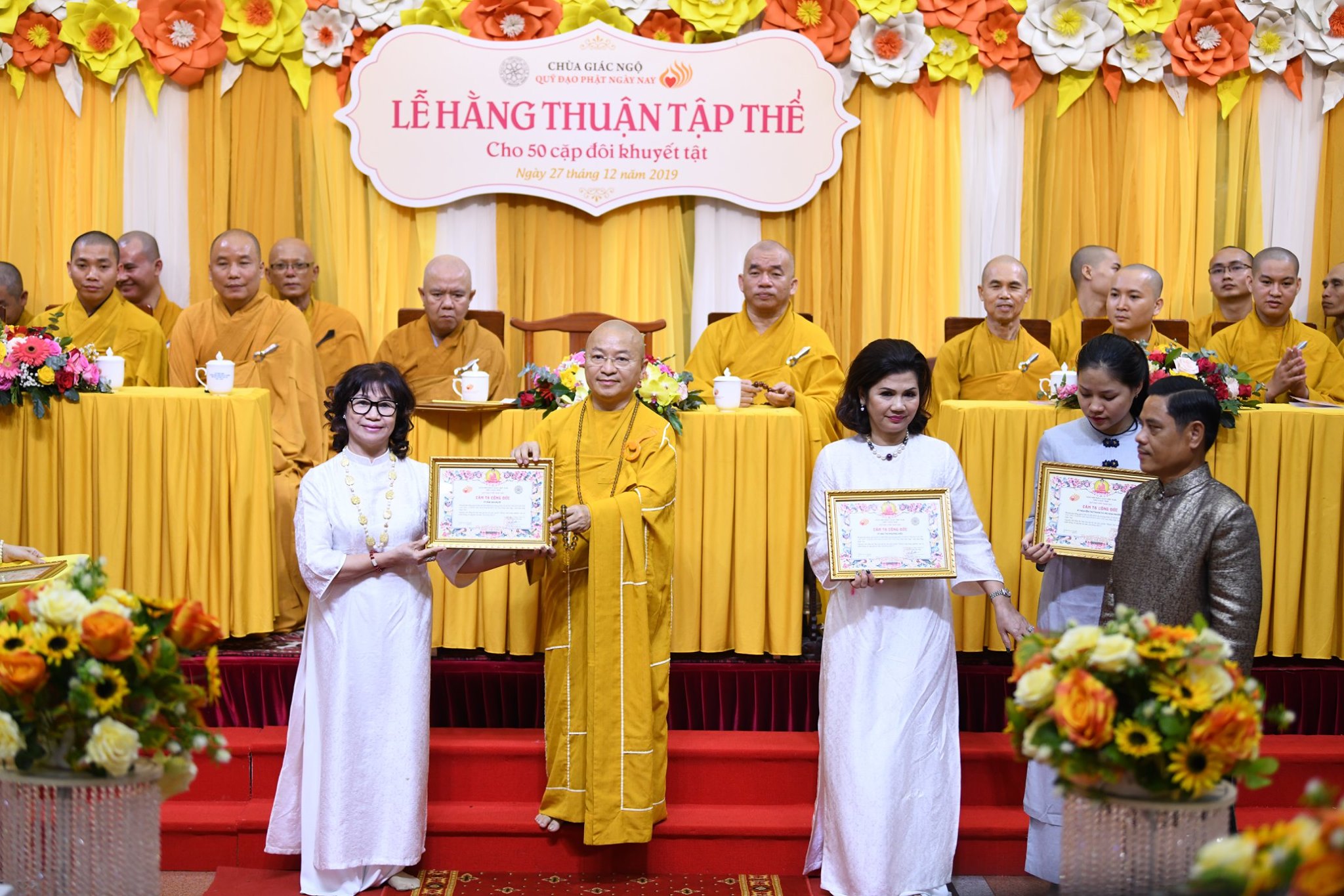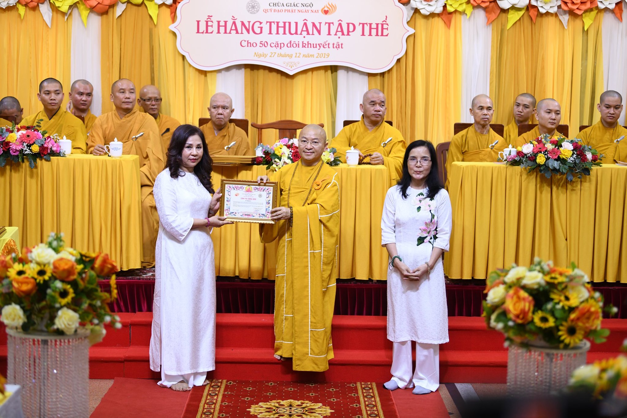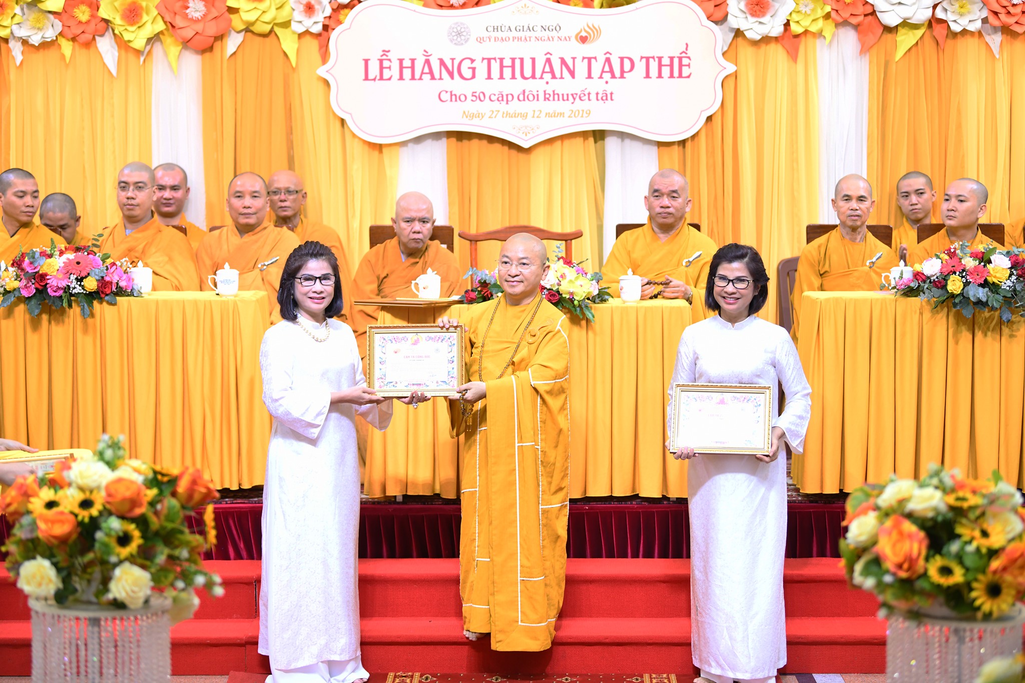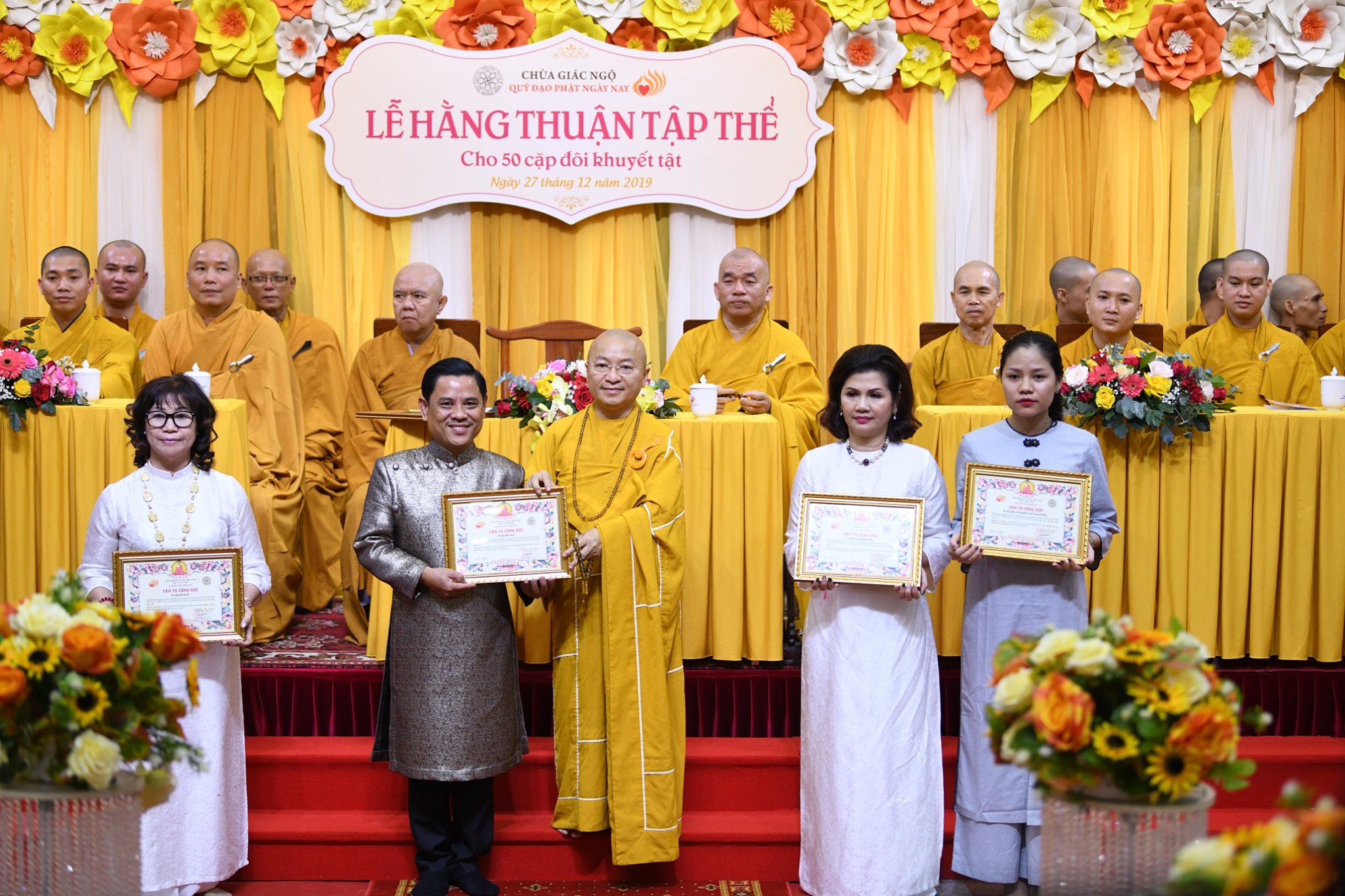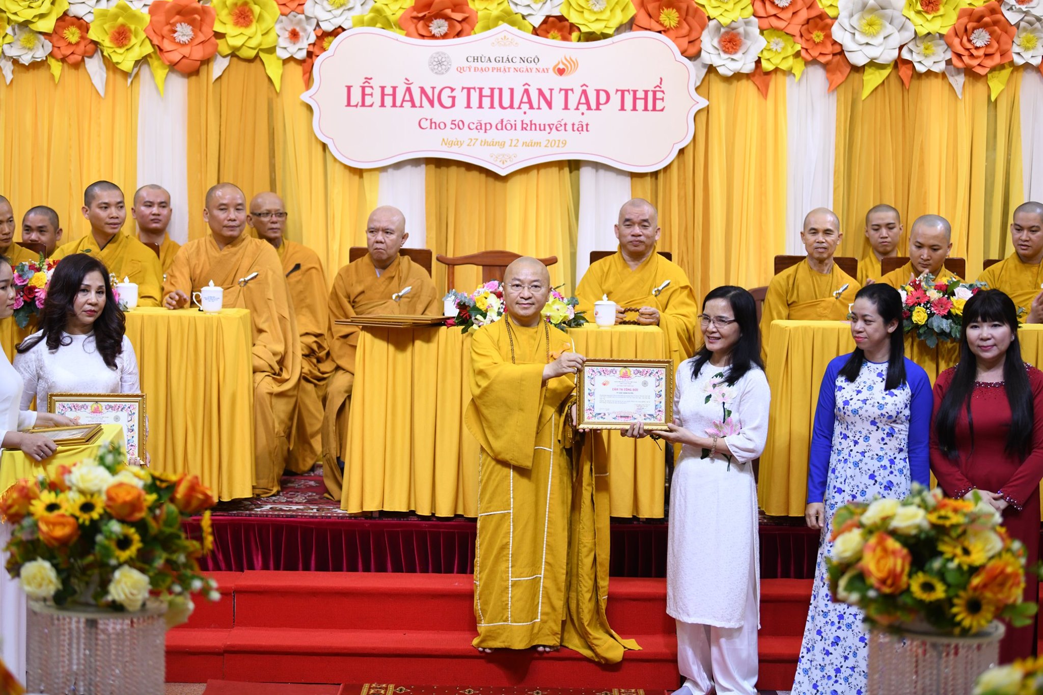 Vào ngày 27/12/2019, chùa Giác Ngộ – Quỹ Đạo Phật Ngày Nay đã trang nghiêm tổ chức Lễ Hằng Thuận tập thể cho 50 cặp đôi khuyết tật.