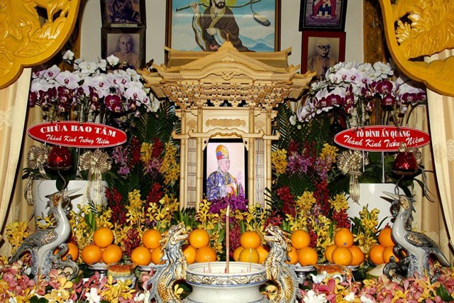Phụng vì Thiện Mỹ đường thượng, tự Lâm tế gia phổ, tứ thập nhất thế, pháp húy thượng NHẬT hạ QUANG, tự THIỆN TRÍ, hiệu MINH QUANG – Giác linh Hòa thượng thùy từ chứng giám.