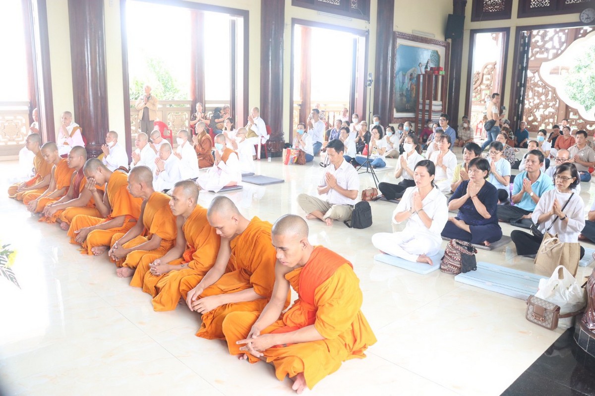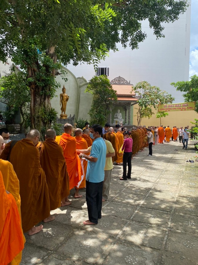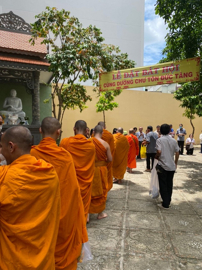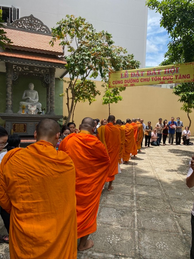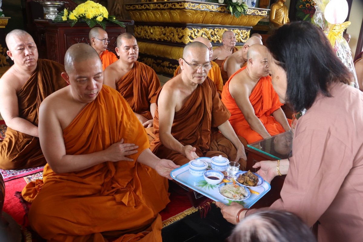 Môn đồ pháp quyến cố Hòa thượng Thích Chánh Niệm thiết lễ cúng dường trai Tăng, dâng mâm Huê và đặt bát hội đến 70 vị chư tôn đức Tăng. TT. Thích Quang Minh, Trụ trì chùa Phật Bảo, đại diện môn đồ pháp quyến dâng lời tưởng niệm, nguyện học theo công hạnh của tôn sư.